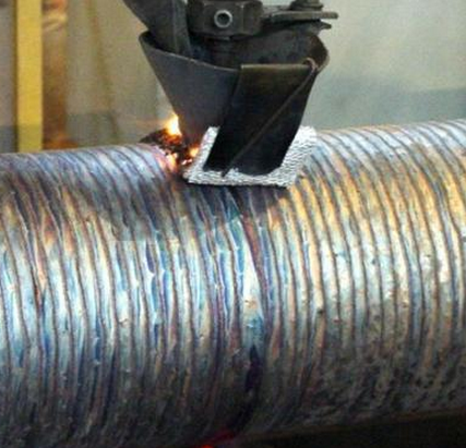 (2)堆焊層硬度的高低主要取決于堆焊層合金的多少,在堆焊時要求熔池要淺,以適當降低母材在焊道中的含量。為此,堆焊時不要采用過大電流,用短弧焊,采用二層焊法。只有這樣才能達到焊絲要求的硬度指標。